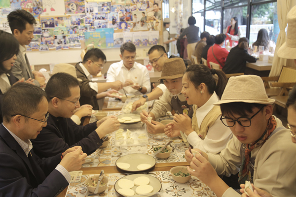隨后,黨員們和“星員工”們圍坐一堂,同包餃子。餃子,是連接孤獨癥青年們與社會的橋梁。將餃子皮平鋪在手心,舀餡、捏褶,指尖翻飛間,一個個餃子便陸續(xù)成型——“星員工”們化身小導(dǎo)師,一絲不茍地向黨員們傳授技巧,現(xiàn)場歡聲笑語不斷,大家也頻頻為“星員工”們嫻熟的技術(shù)點贊。溝通交流中,大家進一步提高了對孤獨癥的認識,增進了對他們的理解和接納。